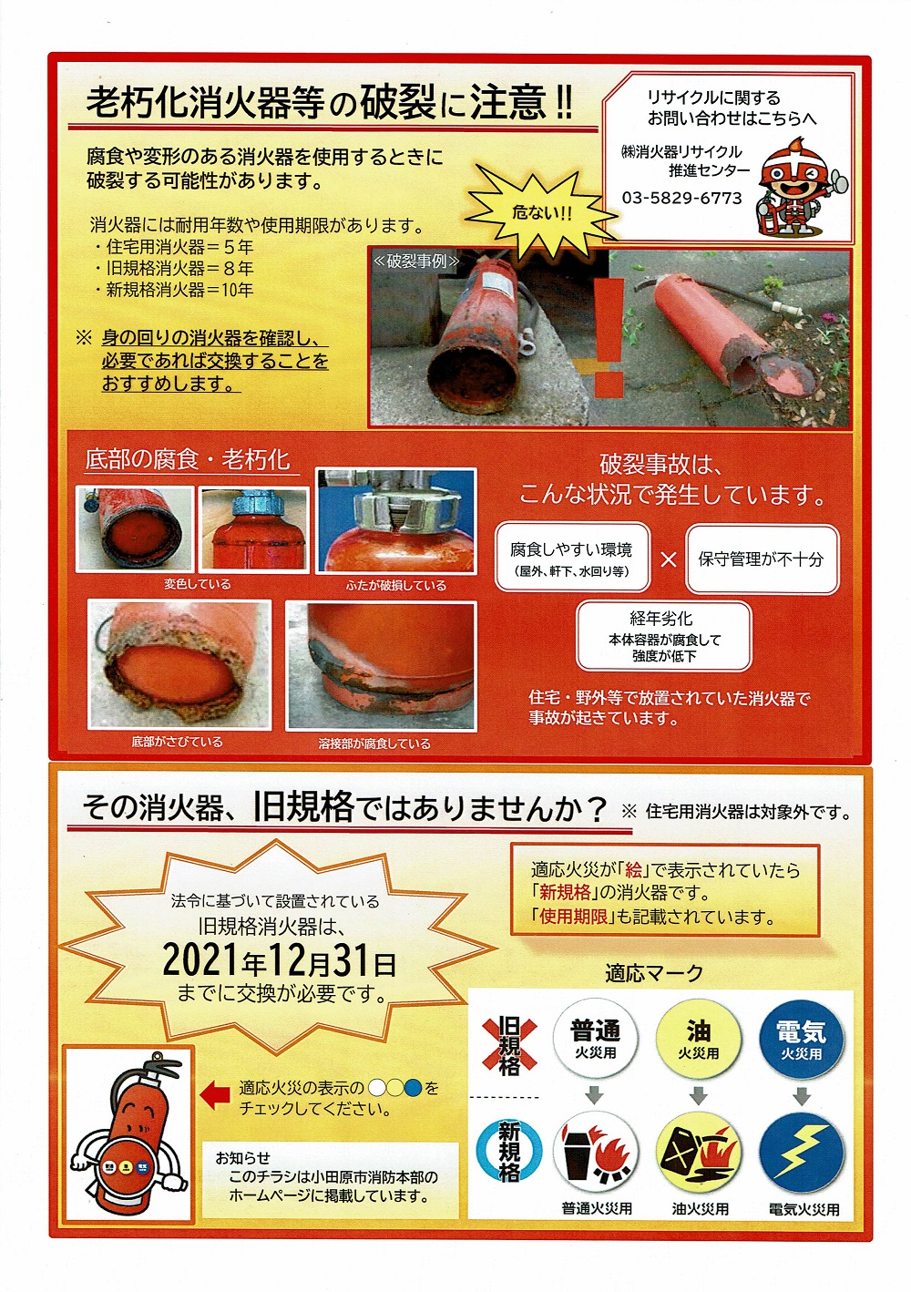 消火器についての注意。