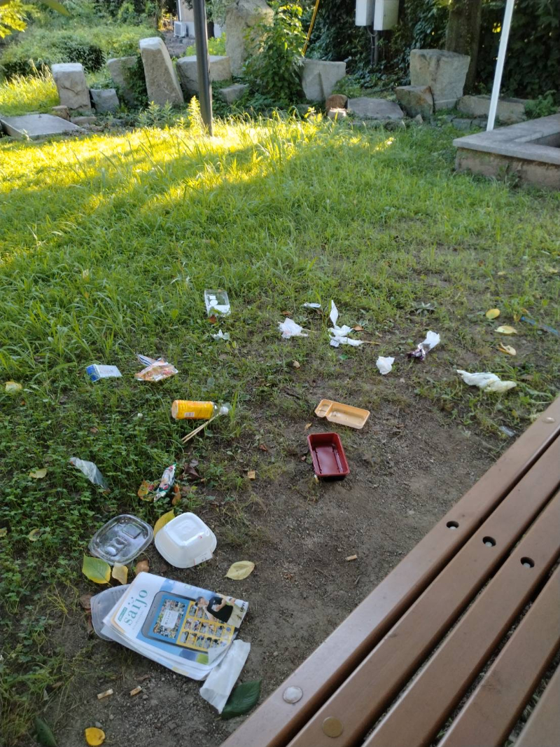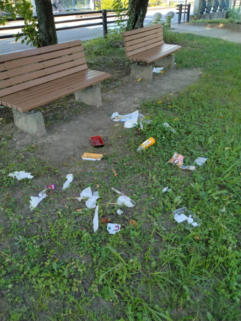 心無い人によってゴミを散らかしています。子供たちが見たらどう思いますか。