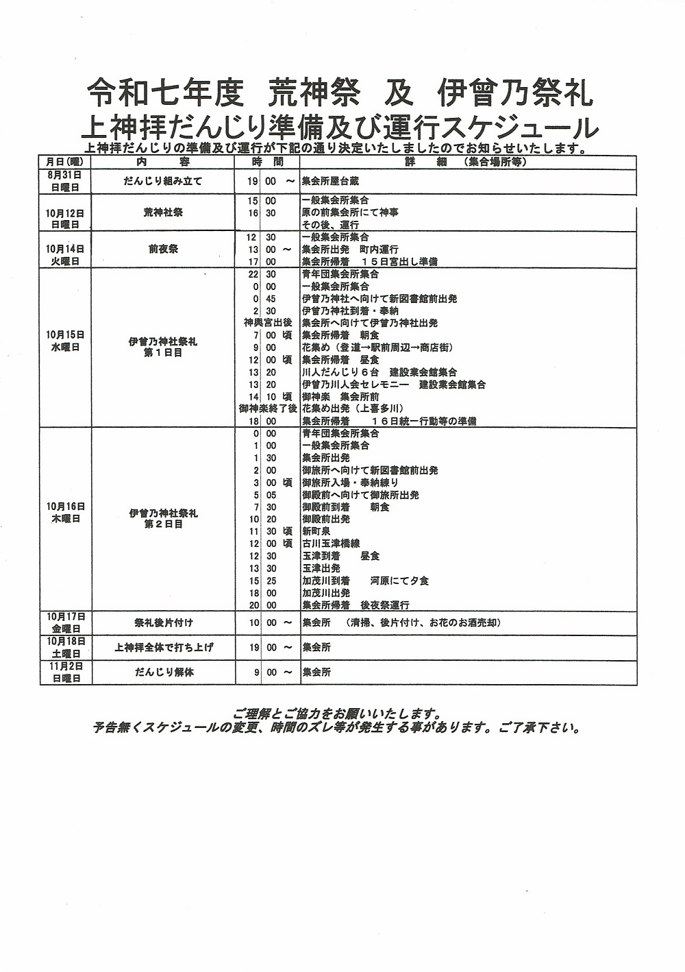 上神拝だんじり運営保存会臨時総会開催について